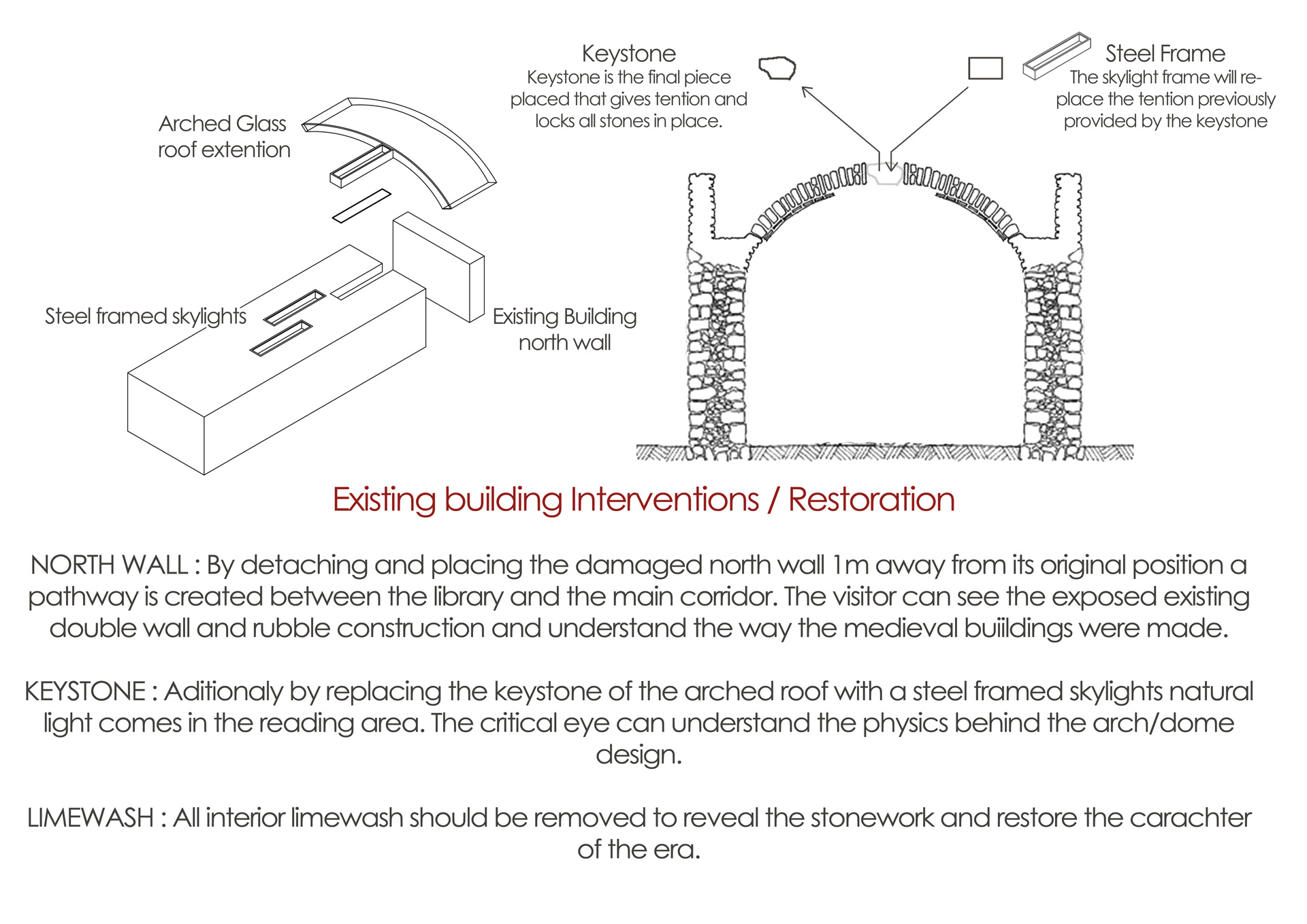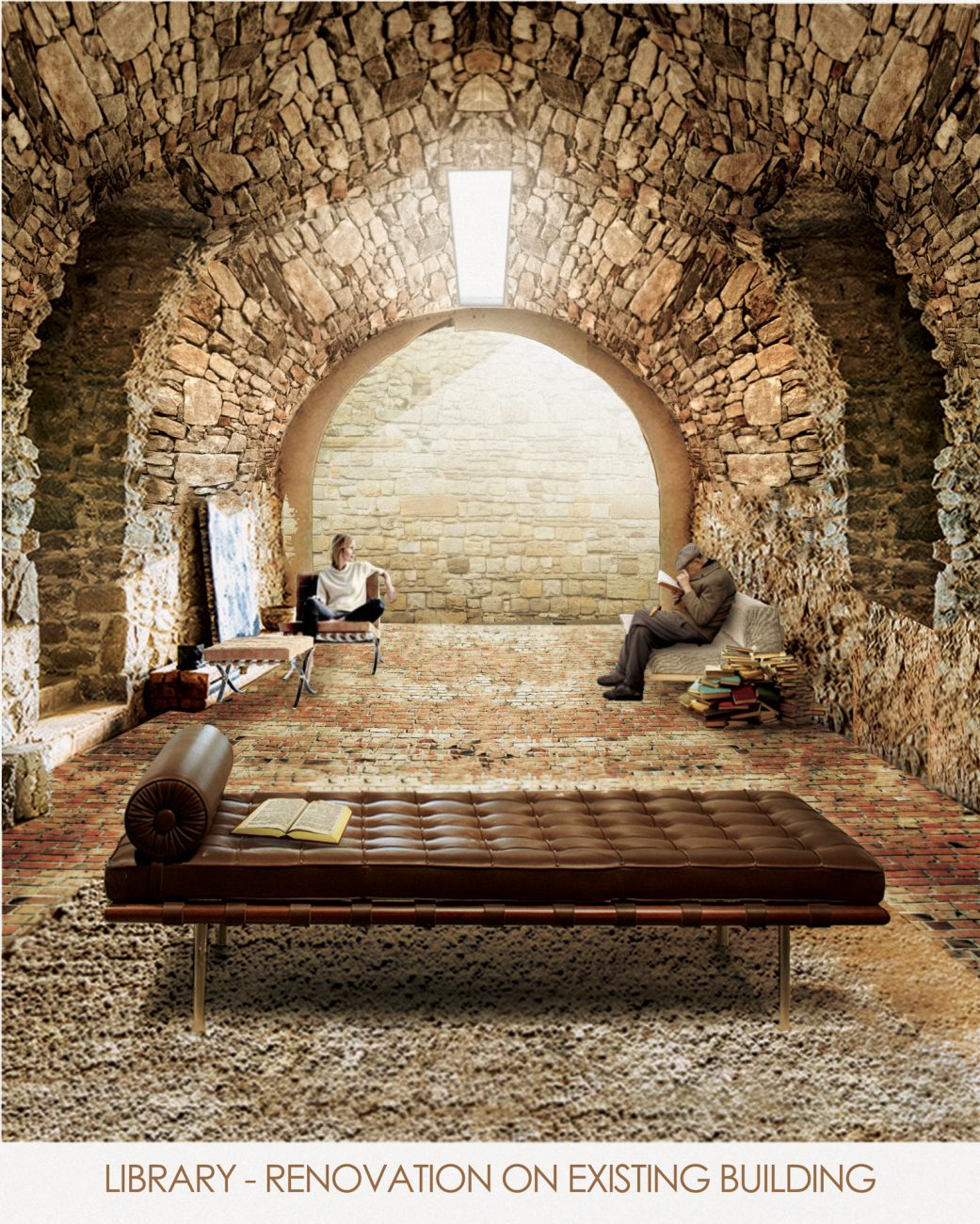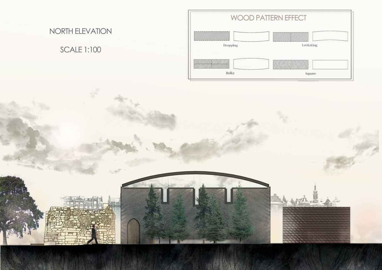 As part of my architectural studies, this design is a gathering place for the philosophy society of St.Andrews placed within the ruins of the old cathedral. An amphitheatre, a library and private meditation spaces cover the needs of modern philosophers. An attempt is made to create a peaceful and welcoming place of personal contemplation and dialogue for the society members along with every citizen of the city.