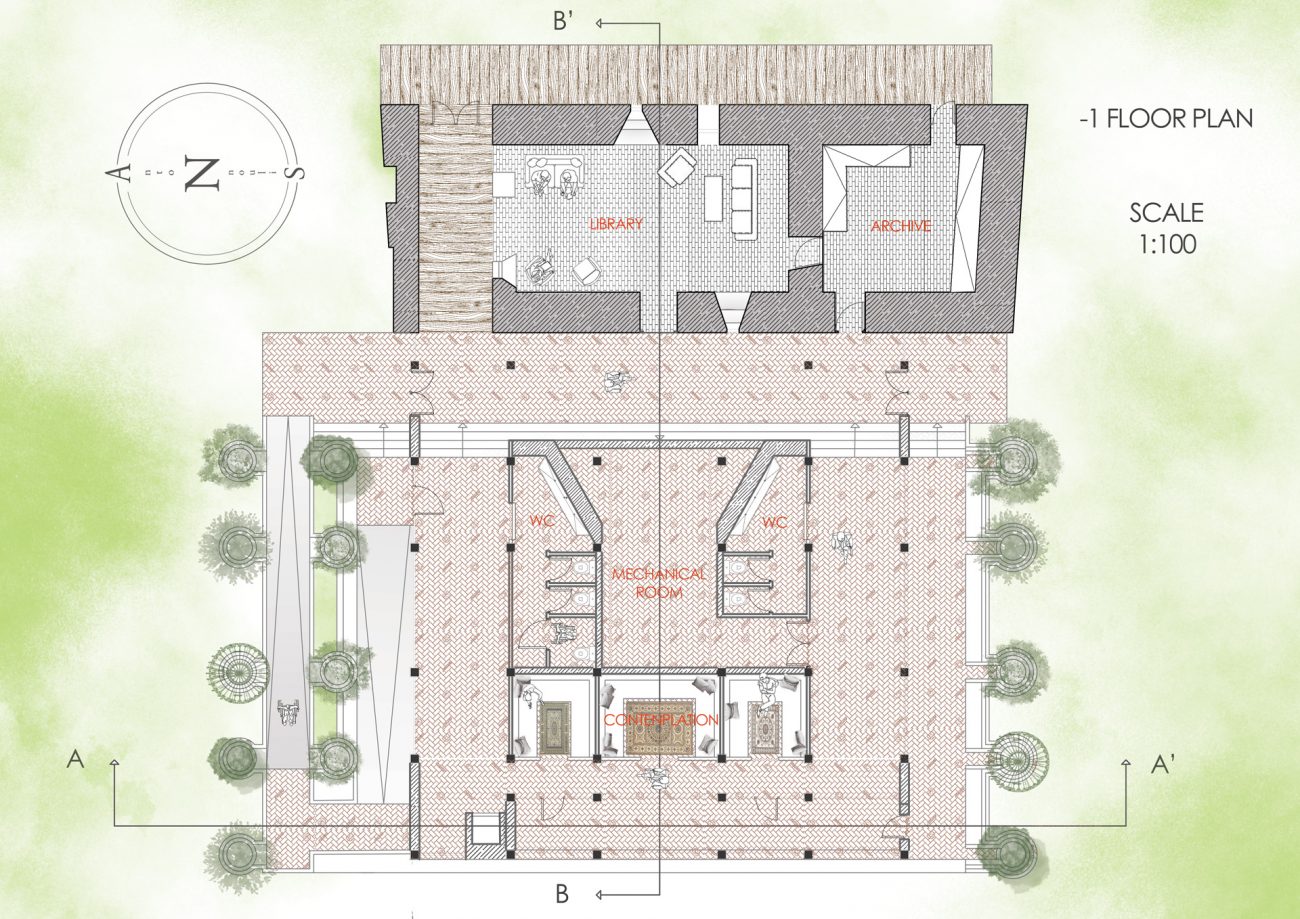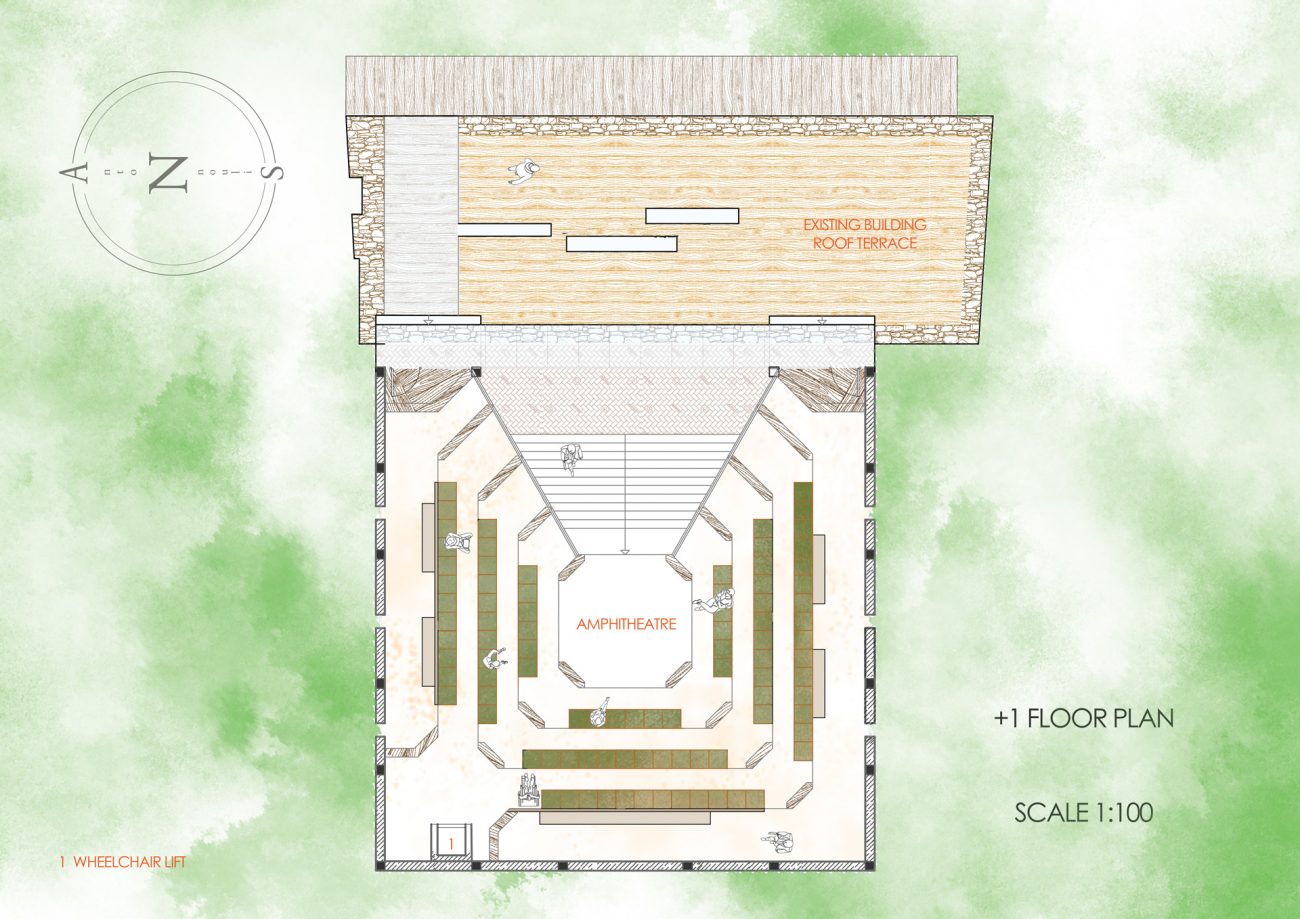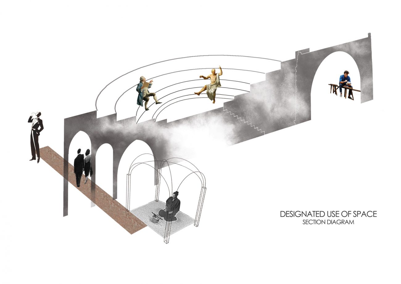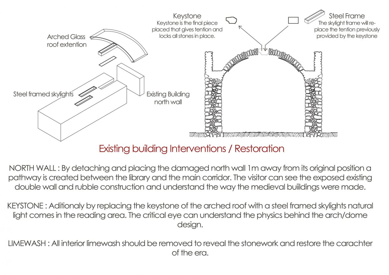 As part of my architectural studies, this design is a gathering place for the philosophy society of St.Andrews placed within the ruins of the old cathedral. An amphitheatre, a library and private meditation spaces cover the needs of modern philosophers. An attempt is made to create a peaceful and welcoming place of personal contemplation and dialogue for the society members along with every citizen of the city.